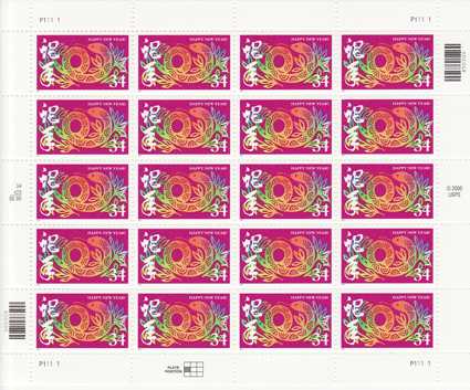 Chinese New Year stamp sheet -- Year of the Snake, 34 cent